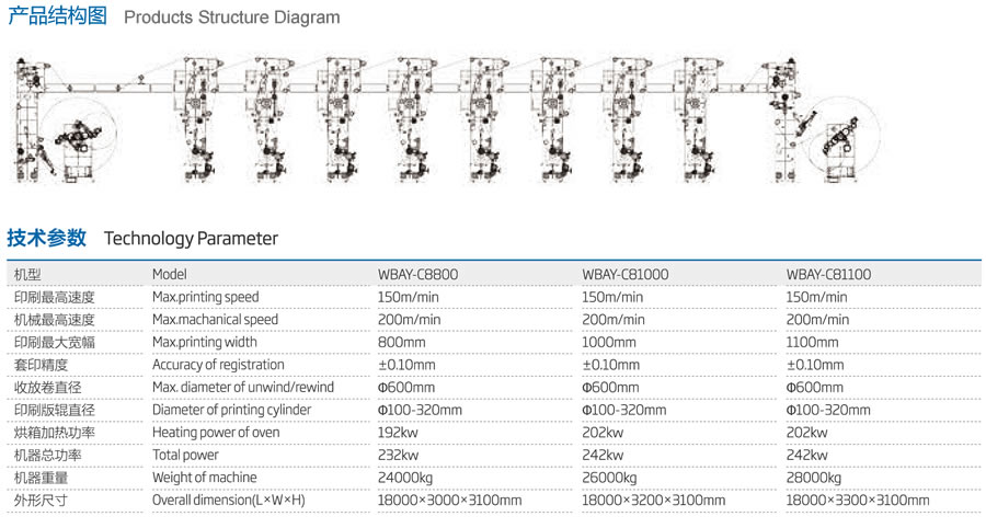 該機(jī)適用于B〇PP、PET、PVC、PE、鋁箔和卷筒紙等具有優(yōu)良印 刷性能的卷狀薄膜材料的多色一次性連續(xù)印刷,廣泛應(yīng)用于各種 高檔次印刷品。 主要特點(diǎn) ?獨(dú)立式高強(qiáng)度機(jī)身。 ?油浸式齒輪箱無(wú)軸裝版。 ?收、放料AB卷不停機(jī)自動(dòng)裁接。 ?整機(jī)張力四擺輥七電機(jī)同步閉環(huán)控制。 ?日本騰倉(cāng)超低磨氣缸控制張力擺桿。 ?日本安川變頻器控制,伺服電機(jī)。 ?升降速反應(yīng)快,套印穩(wěn)定,成品率高。 ?水冷、風(fēng)冷雙冷卻機(jī)構(gòu)。 ?雙絲桿縱向預(yù)套準(zhǔn)裝置。 ?三方位可調(diào)雙軸氣動(dòng)刮刀(竄動(dòng)量± 6mm)。 ?外置式獨(dú)立加熱系統(tǒng)。 ?人本式人機(jī)界面操作。 -高清晰度的靜止畫面和高精密的套色系統(tǒng)。 -新穎獨(dú)特的外觀設(shè)計(jì)。